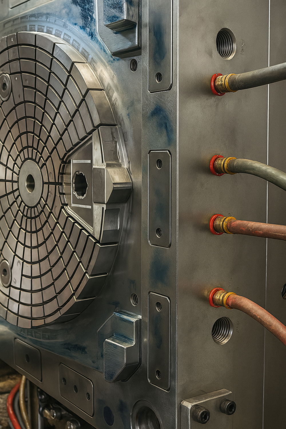 Nous l'assumons, et nous l'encadrons. Les moules sont acheminés par bateau — le mode de transport le moins carboné au kilomètre — sur un trajet unique pour toute leur durée de vie. Un moule d'injection produit entre 250 000 et 500 000 pièces. Ramené à la pièce, son empreinte carbone est négligeable.